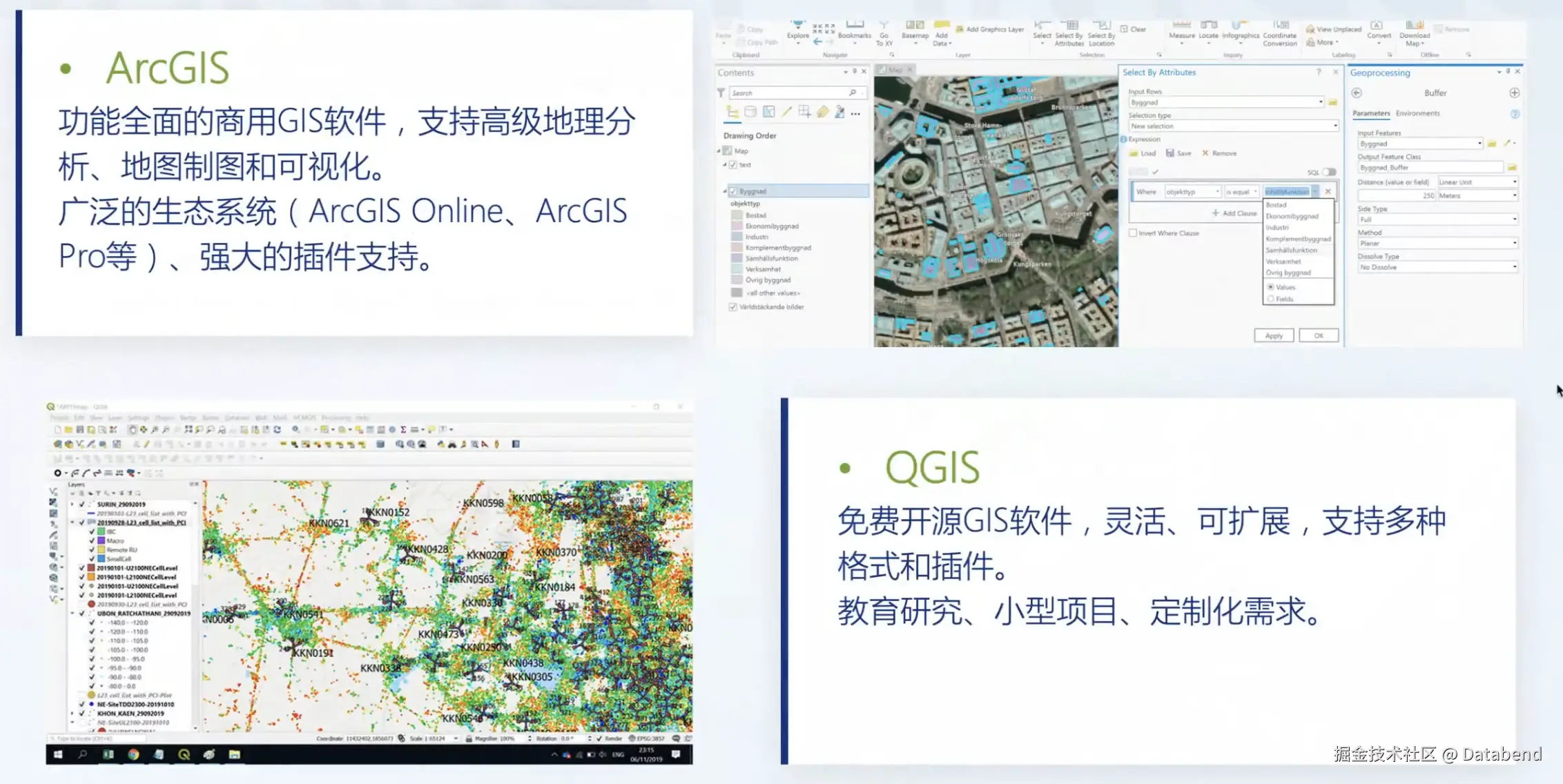数据分析 。 对存储后的数据做各种空间相关运算,例如距离测试、面积测算等;