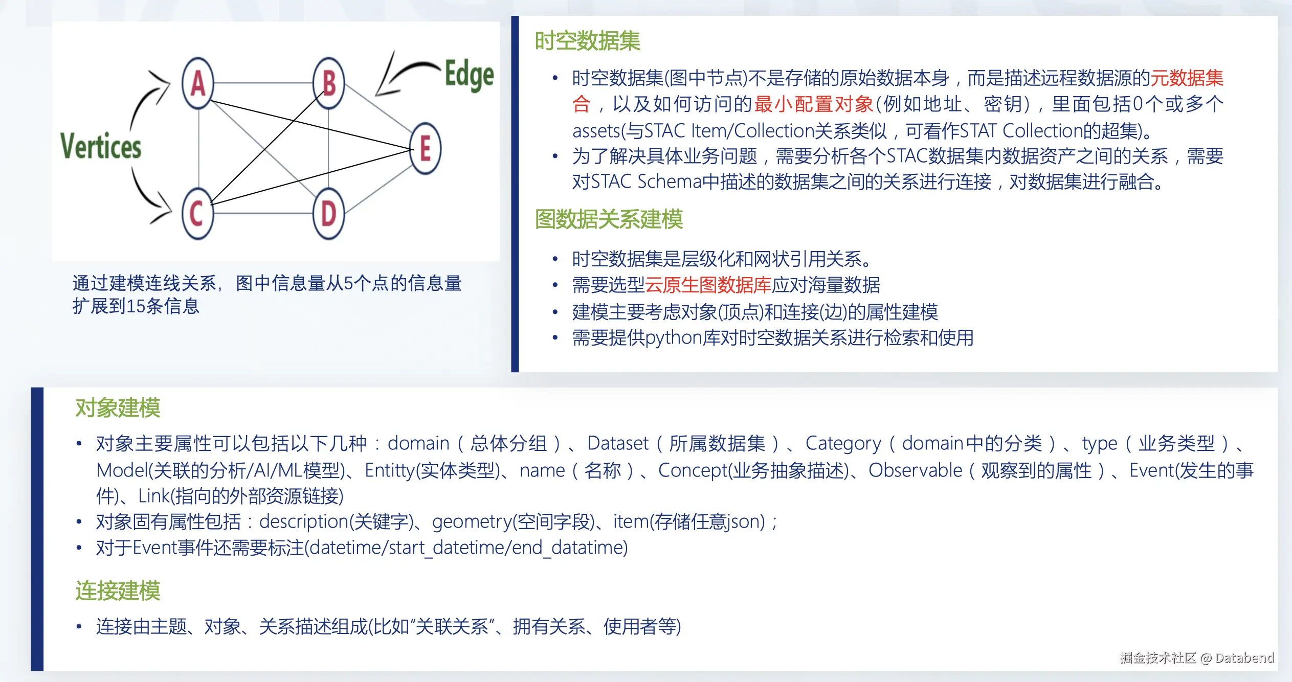 时空数据建模主要分为对象建模和连接建模:对象建模比较简单。连接建模就是如何建立两个对象之间的关系。时空数据的关系错综复杂,一个是层级化的,一个是网络化的。