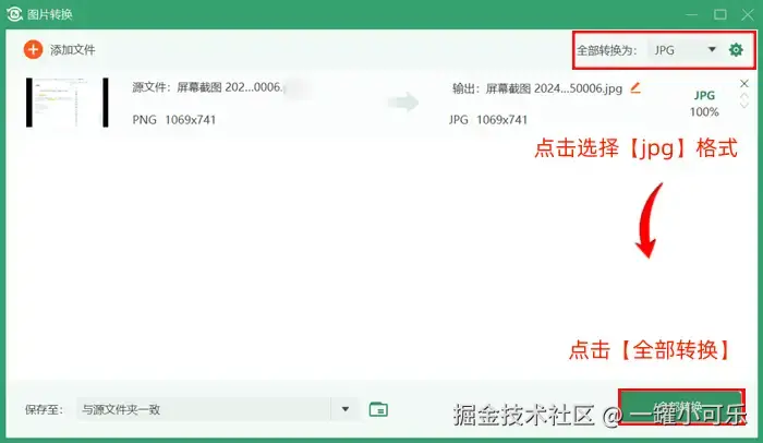 步骤2:选择【convert to】的格式为jpg格式,然后点击【转换】即可。