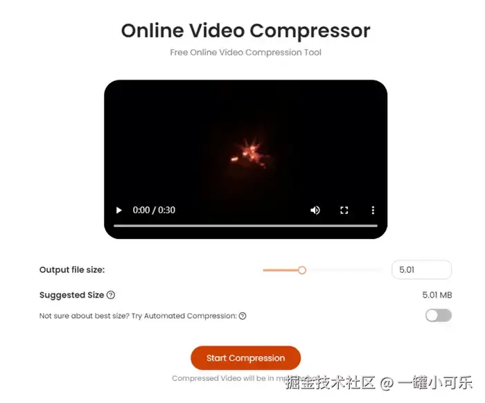 Compress-Video同样是一个在线视频压缩网站,可以解决怎样压缩视频的问题。该网站的优势在于提供了分离音视频的功能,用户可以自行选择是否分离音视频。与Red Panda Compress类似,作为在线网站,其压缩过程同样受到网络环境的制约,且对于大文件或高分辨率视频的压缩,可能需要较长的处理时间。下面是具体的操作步骤。