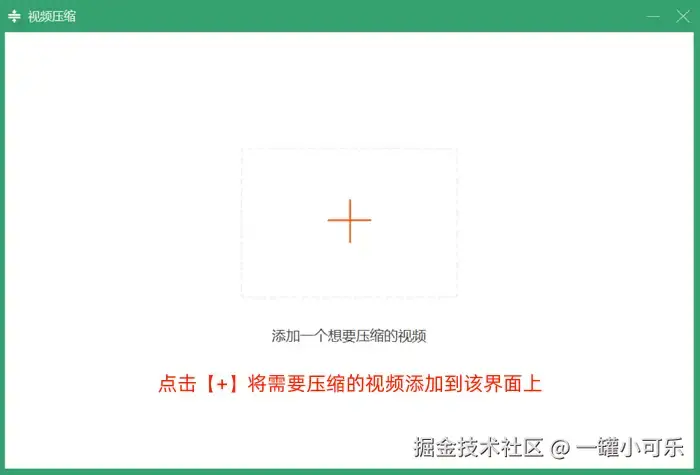 第二步:点击界面弹出来的【+】符号,将需要压缩的视频添加到该界面上。