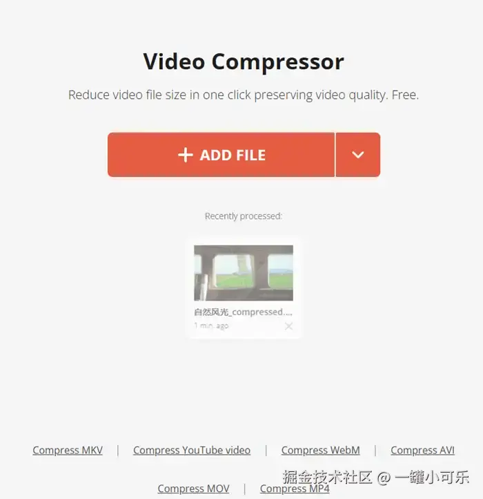 操作步骤: 进入该网站后,直接点击【add files】上传视频文件,即可自动开始压缩视频。