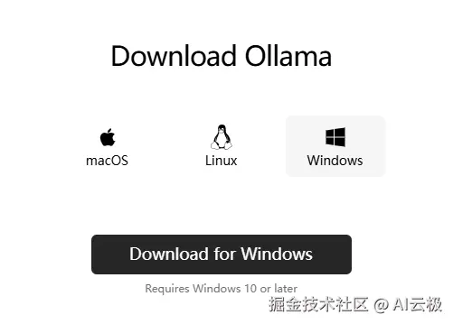 ######## 1·按官网的方式下载、安装; # 支持【macos|linux|windows】 https://ollama.com/download ######## 2·启动 ## Windows (PowerShell): ollama serve 或 点击“Ollama”图标运行 ## Linux|macOS: ollama serve ######## 3·当安ollama之后,我们可以通过访问如下链接来判断ollama是否安装成功 http://127.0.0.1:11434 -