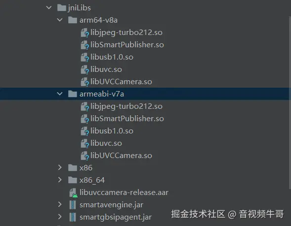 拷贝libSmartPublisher.so和libSmartPlayer.so(如需语音广播或语音对讲)到工程;