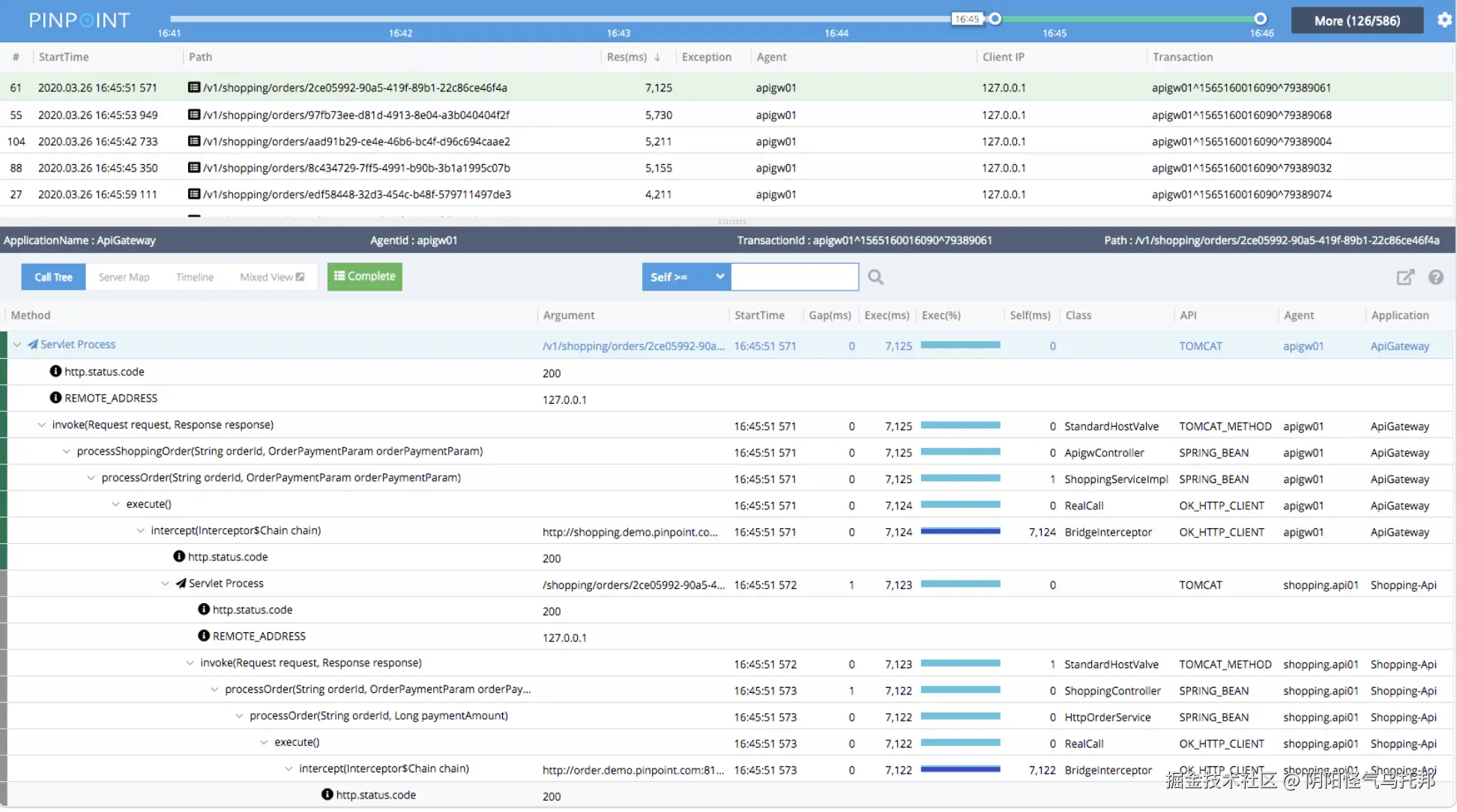 边车代理本身对应用透明的工作原理,决定了它只能实现服务调用层面的追踪,像前面 Pinpoint 截图那样的本地方法调用级别的追踪诊断,边车代理是做不到的。