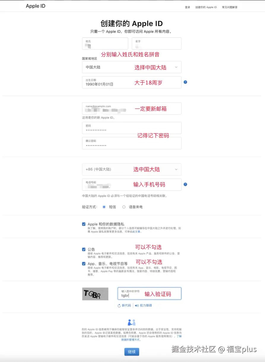 - 密码:设置密码时,密码中不要包含有名字、生日、邮箱中的信息,否则会卡在验证码那一步。