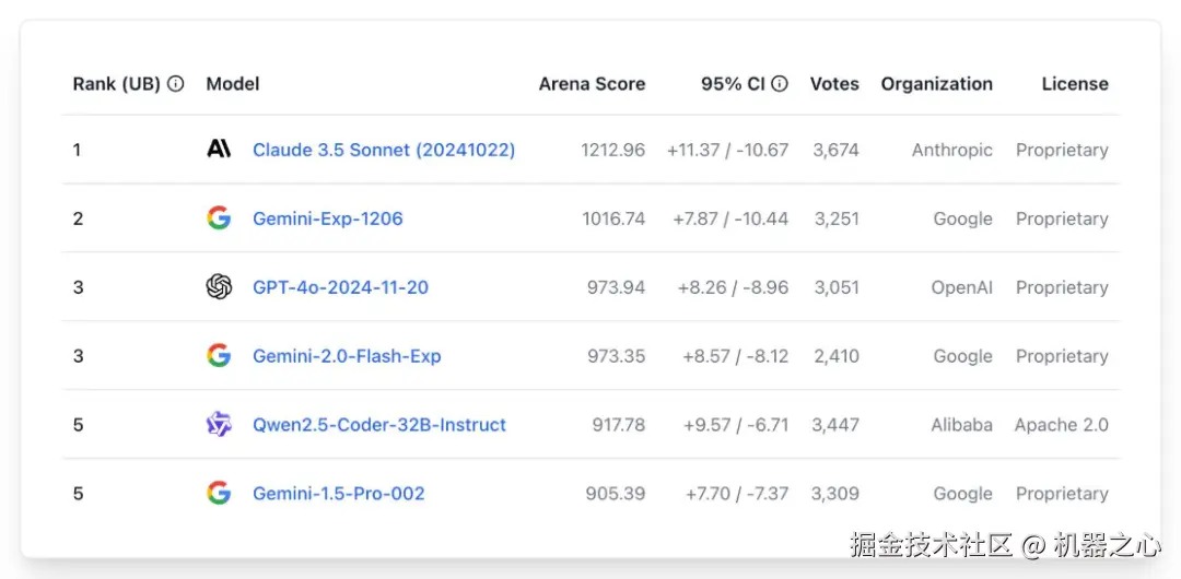 到了 12 月,Chatbot Arena 团队为此类功能推出了一个全新的排行榜,用户可以用两个不同的模型构建相同的交互式应用,然后对结果进行投票。