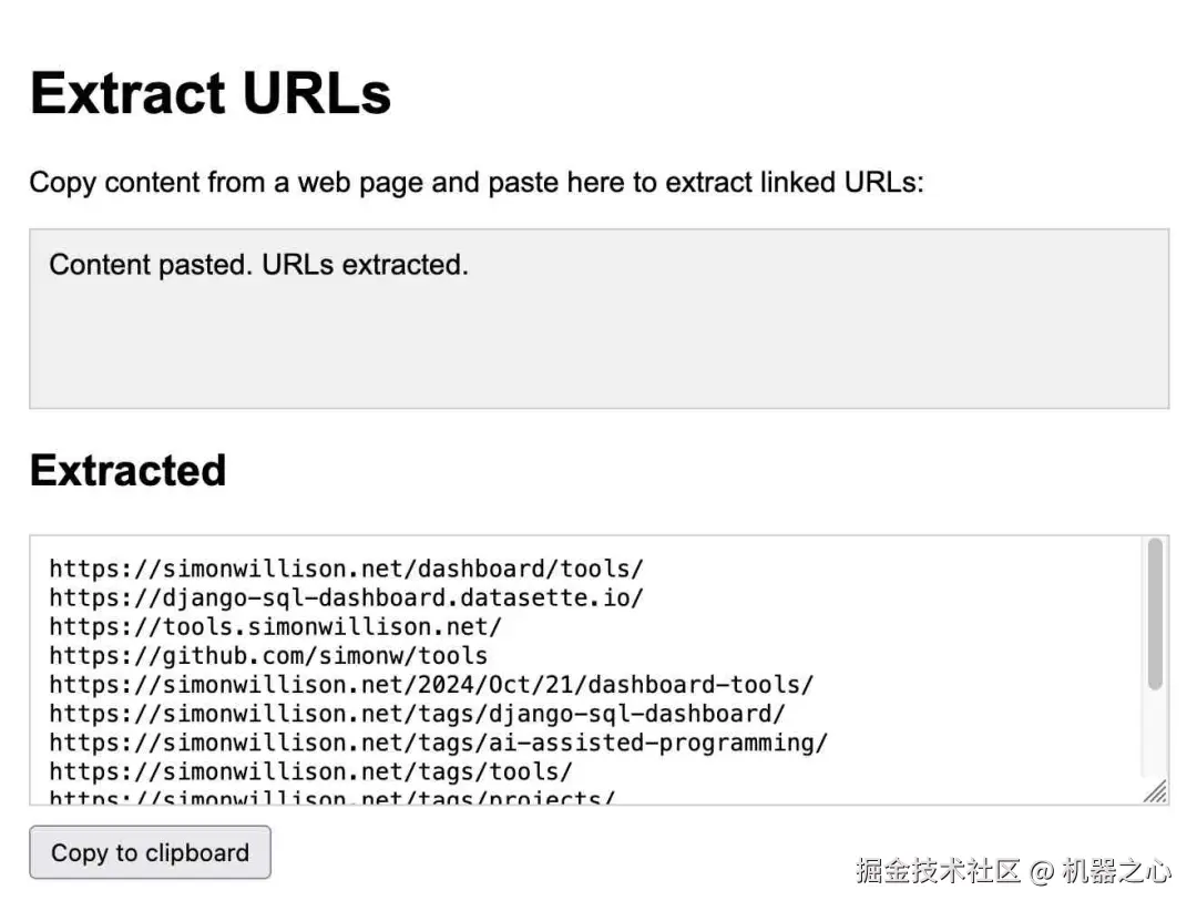 这就是我用 Claude 生成的一个提取网页 URL 的应用: