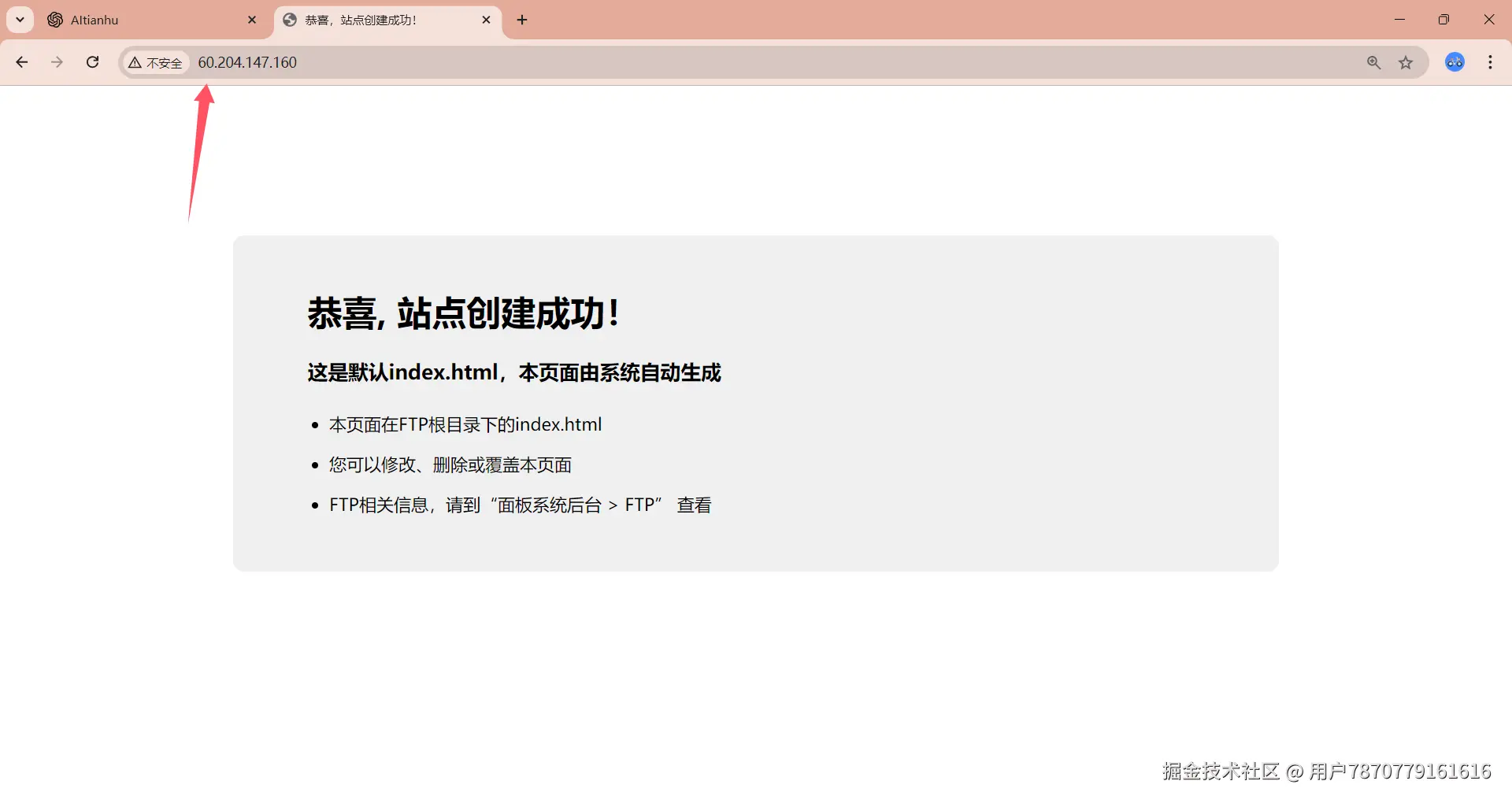 2、站点查看http://公网IP