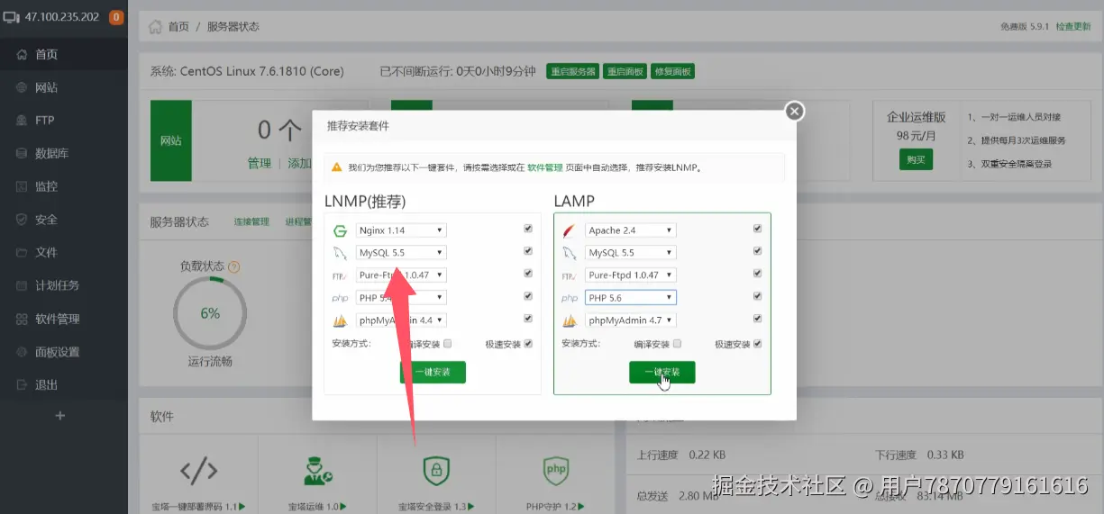 1、下载宝塔面板,大约需要1~2分钟左右
