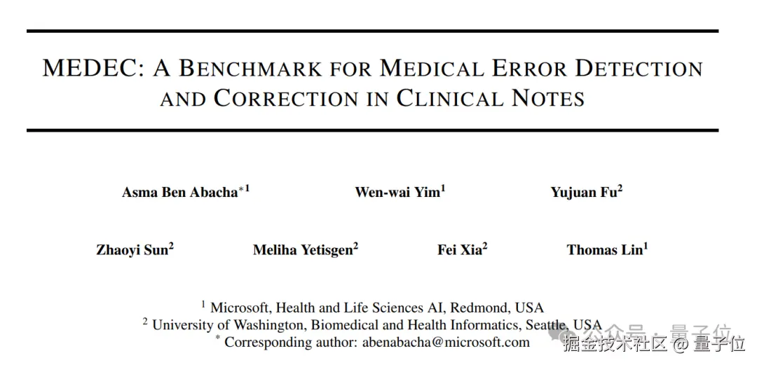 实际上,原论文介绍了一项与医学相关的 benchmark——MEDEC。
