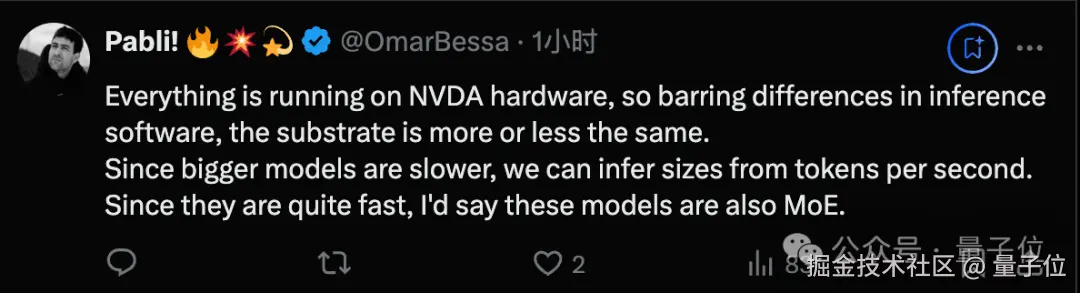 也有人认为,大多数模型都是在英伟达 GPU 上运行的,所以可以通过 token 生成速度来估计。