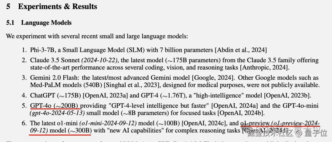 o1-preview 约 300B 参数,GPT-4o 约 200B,GPT-4o-mini 约 8B……