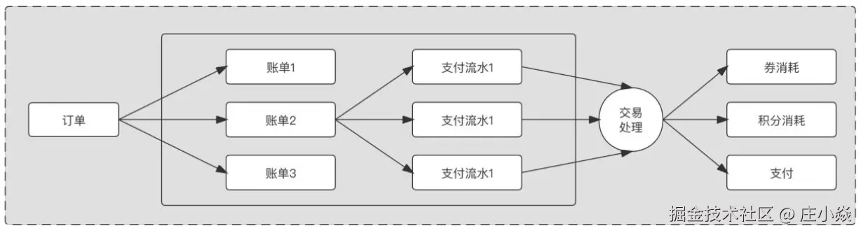 上面提到,一个平台存在多种交易模式,在不同交易模式里就会存在不同的订单模式,而对于不同模式来说就需要不同类型的账单,比如ToC的账单和TB的账单会有区别,用户下单需要的账单和商家缴纳保证金的账单会有区别