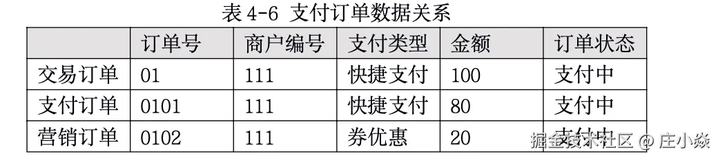 交易订单,交易订单是总订单,会基于账户,营销拆成子订单,如表4-6所示