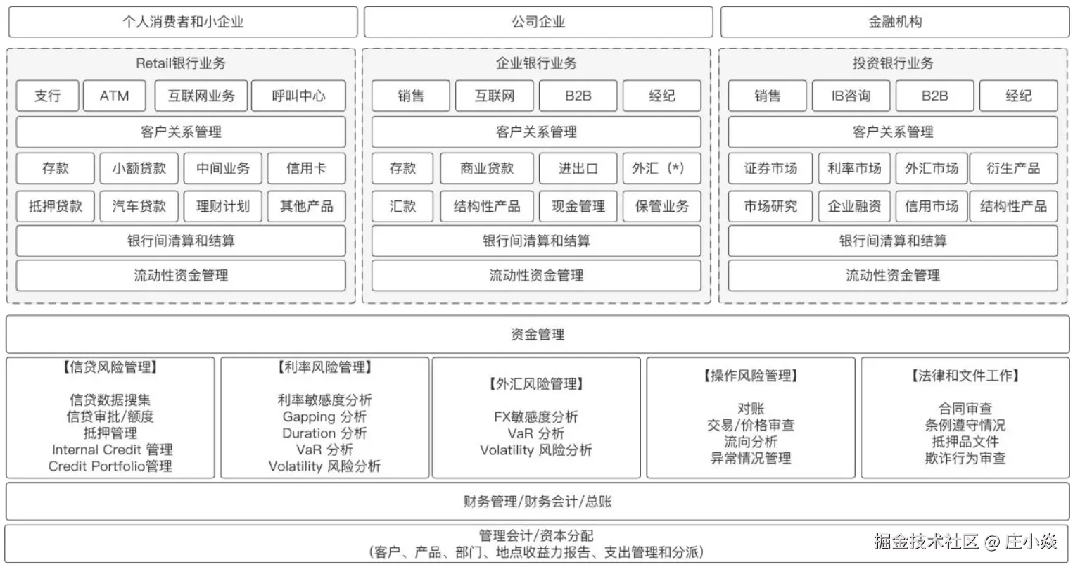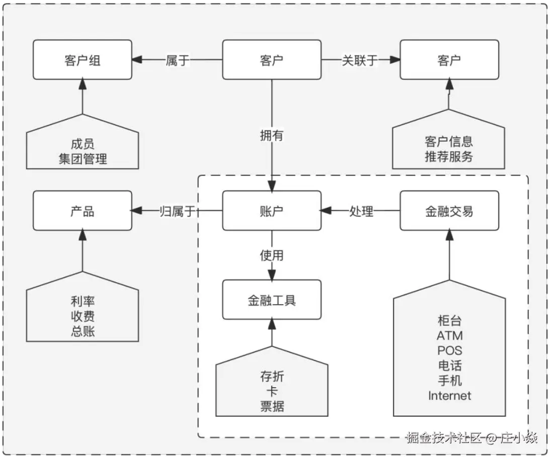 银行是金融机构,相对于服务平台,三方支付机构以及网联这样的清算机构是有很大不同的,首先是业务的不同,银行除了提供互联网支付通道以外,还有门店,ATM,银行卡,存款业务,贷款业务,理财业务等等,业务汇总如图,业务间的关系可以如下所示: