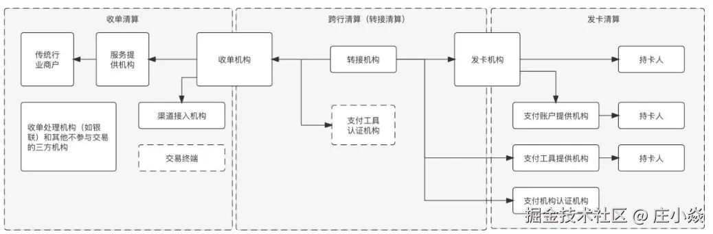 - 支付机构是提供支付服务的公司,如支付宝、微信支付等,负责处理支付请求、资金结算和清算。