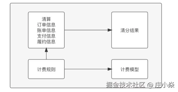 清算系统接收到的清算订单信息包含,订单信息,账单信息,支付信息,履约信息。在计费环节有几个关键的模块,如图: