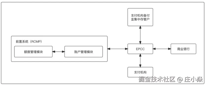 为解决备付金集中存管所形成的热点账户问题,实现对已映射额度管理,网联构建了“备付金热点账户前置系统”RCMP,用于支付机构通过网联平台(EPCC)的业务办理。前置系统分为额度管理模块及账户管理模块,网联为各支付机构在前置系统中建立账户,用于可用额度的监控、已映射额度的管理。