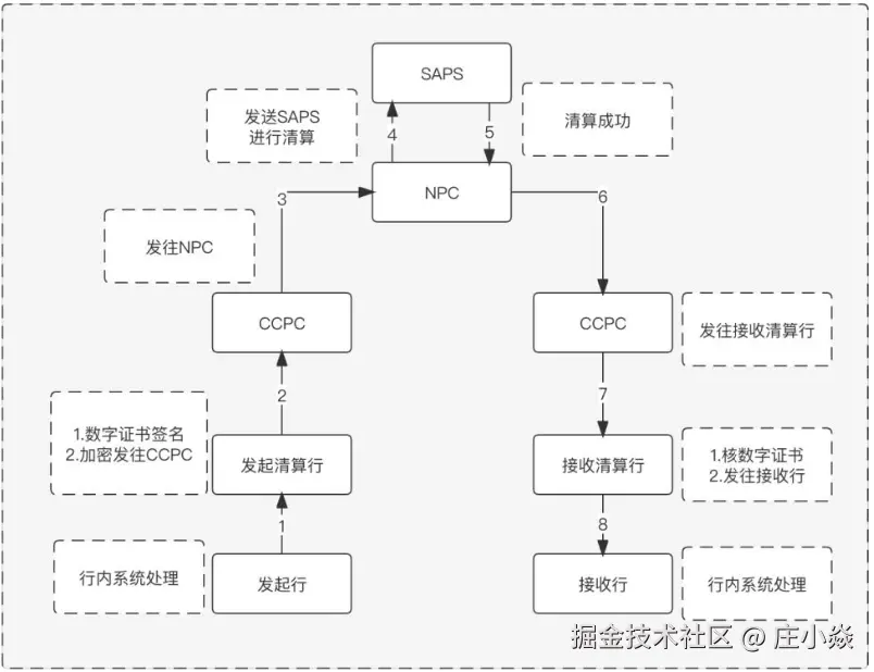 最左边的就是银联以及三方支付机构所处的位置,上面的就是我们要讲的人行部分,下面是银行所处的位置;其中银联和商业银行直联央行的支付清算系统;我们来看整体的业务架子就是,各参与者连接到NPC就是国家处理中心,或者连接城市处理中心CCPC,包含了大小额支付系统和网银互联跨行支付系统(超级网银),然后PC经过支付指令的处理之后提交清算账户中心(SAPS)进行资金的清算划拨。