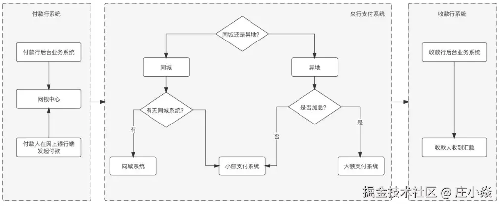 大额支付系统,小额支付系统,网上支付跨行清算系统接受参与者的清算支付指令,进行指令的处理并提交给清算账户管理系统完成资金划拨;在网上银行端发起跨行的付款请求,假设金额较小走了小额支付系统,业务流程如图所示: