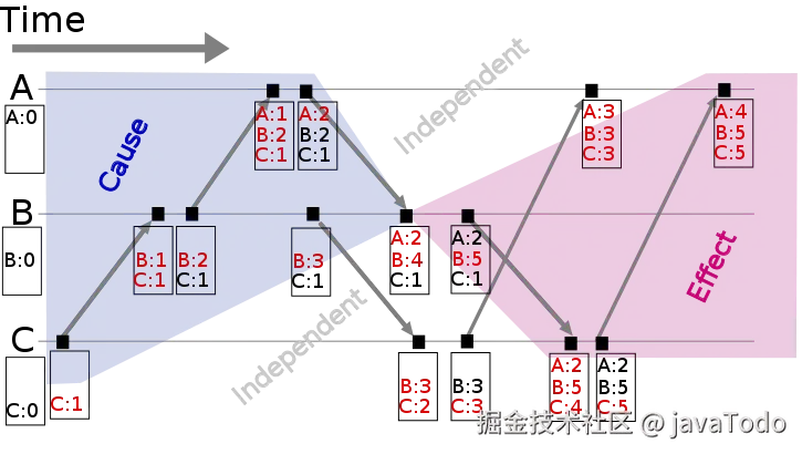 图2: Vector clock space time (图片来源: wikipedia)