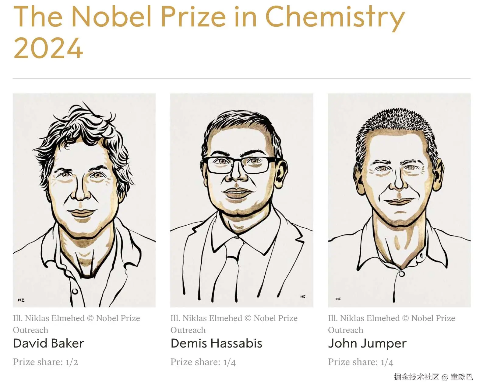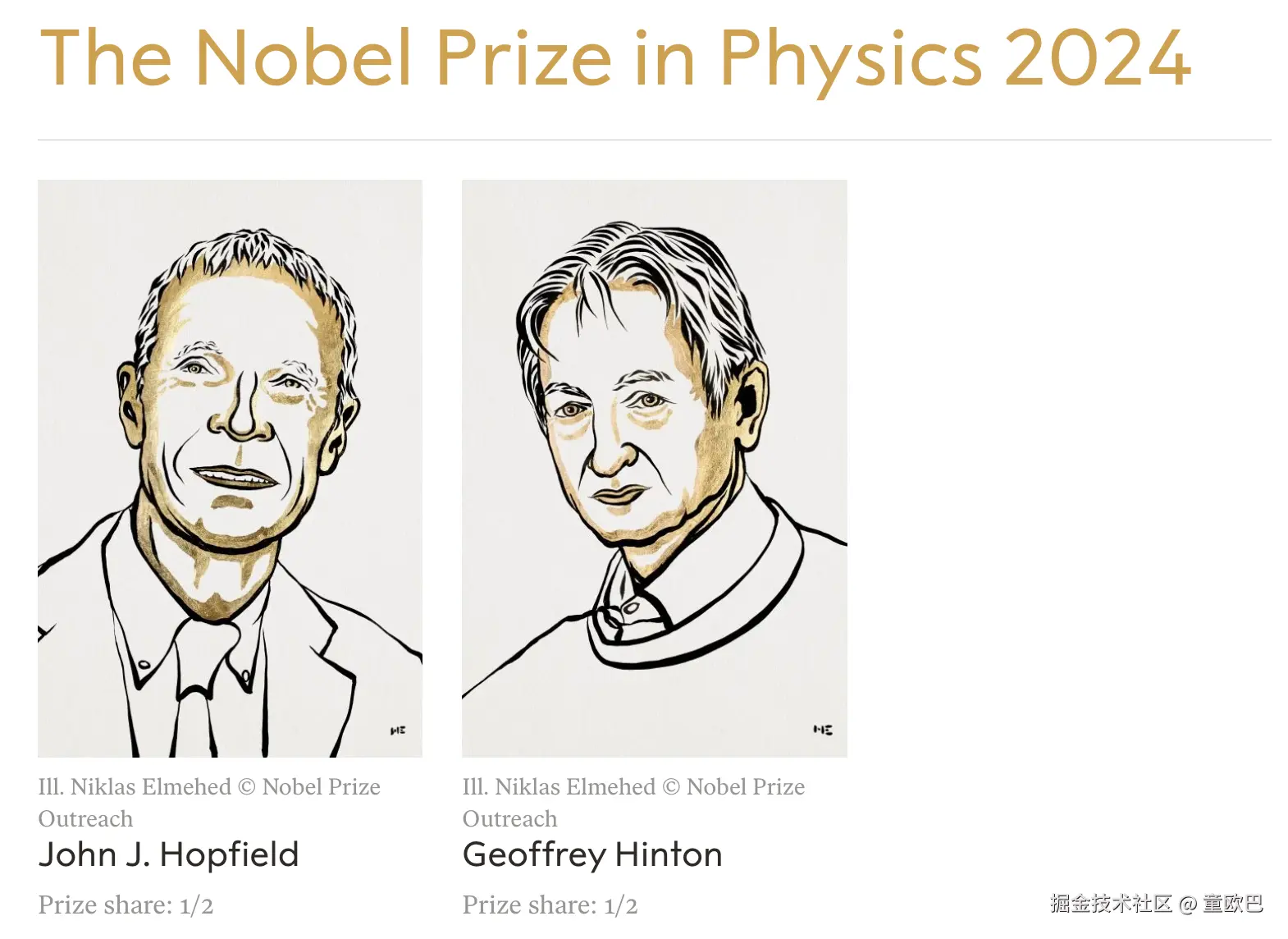 物理学奖:John Hopfield 和 Geoffrey Hinton 化学奖:Demis Hassabis 和 John Jumper(以及 David Baker)