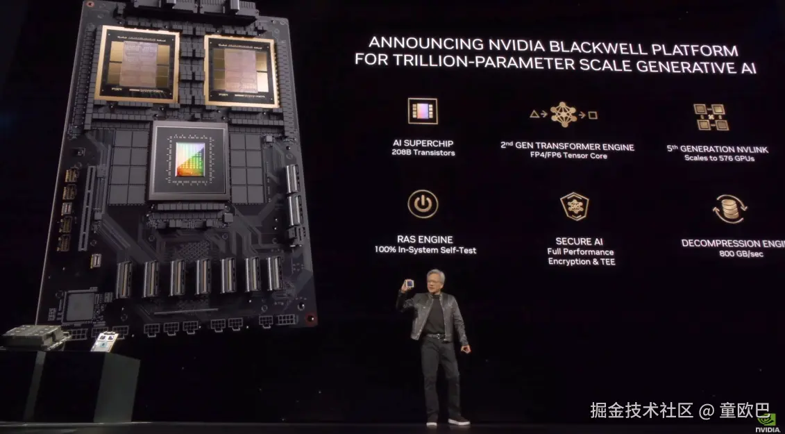 2024 年 3 月 18 日,英伟达的 GTC 大会,发布新一代 Blackwell GPU 架构。