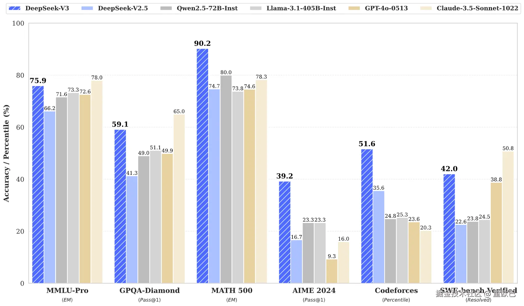 2024 年 12 月 26 日,神秘的东方再次震惊了世界,DeepSeek 发布了 V3 模型,不仅全球开源排名第一,而且性能比肩世界顶尖模型 GPT-4 和 Claude-3.5-Sonnet。🔗官方报道