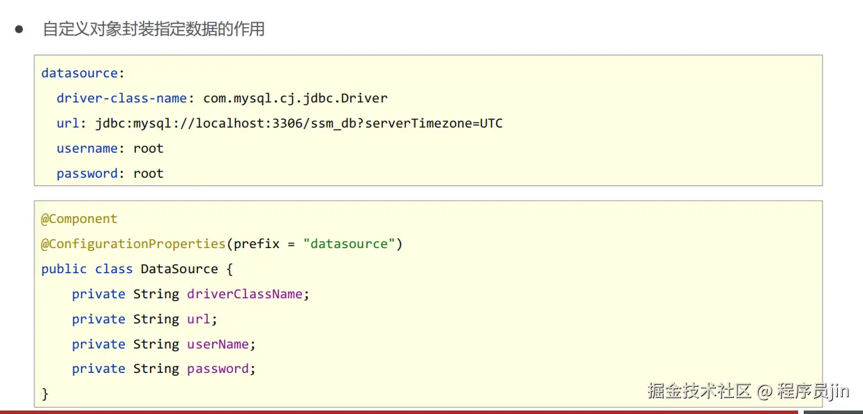 - 使用@ConfigurationProperties注解绑定配置信息到封装类中