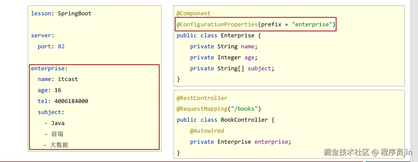使用@ConfigurationProperties注解就可以将配置中的属性值关联到开发的模型类上