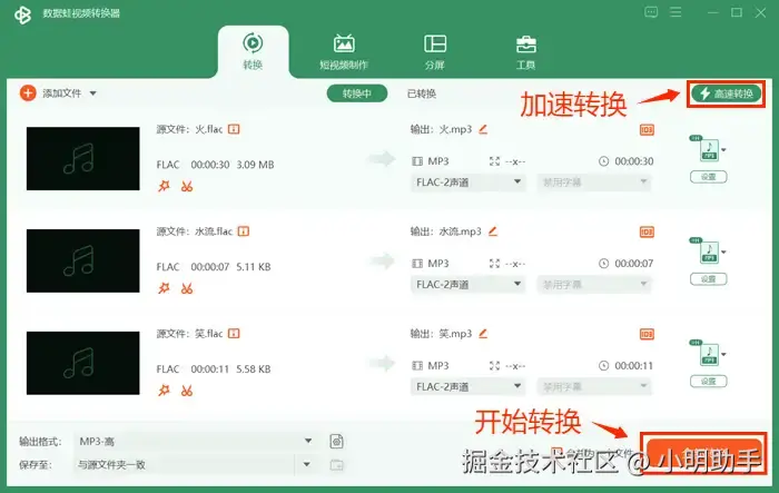转换音频的方法多种多样,用户可以根据自己的需求选择合适的flac在线转mp3方式。在线转换工具和手机小程序适合临时或少量文件的转换,而数据 蛙视频转换器则具备转换高效、高质量、简便、支持批量转换等优势,小编强烈推荐!