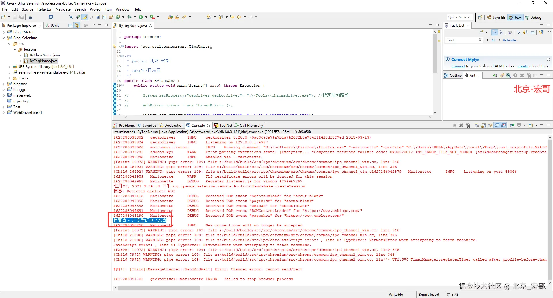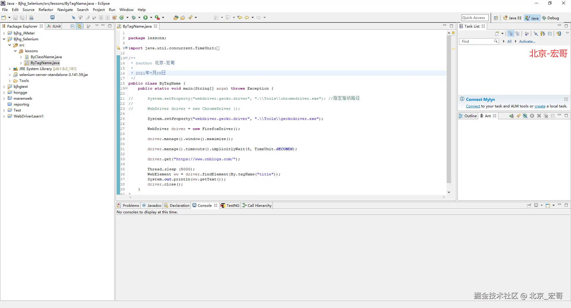 当前标签没有重复值,所有可以直接用find_element***定位元素,和前边讲述的都差不多。宏哥这里以博客园为例,获取博客园的title。