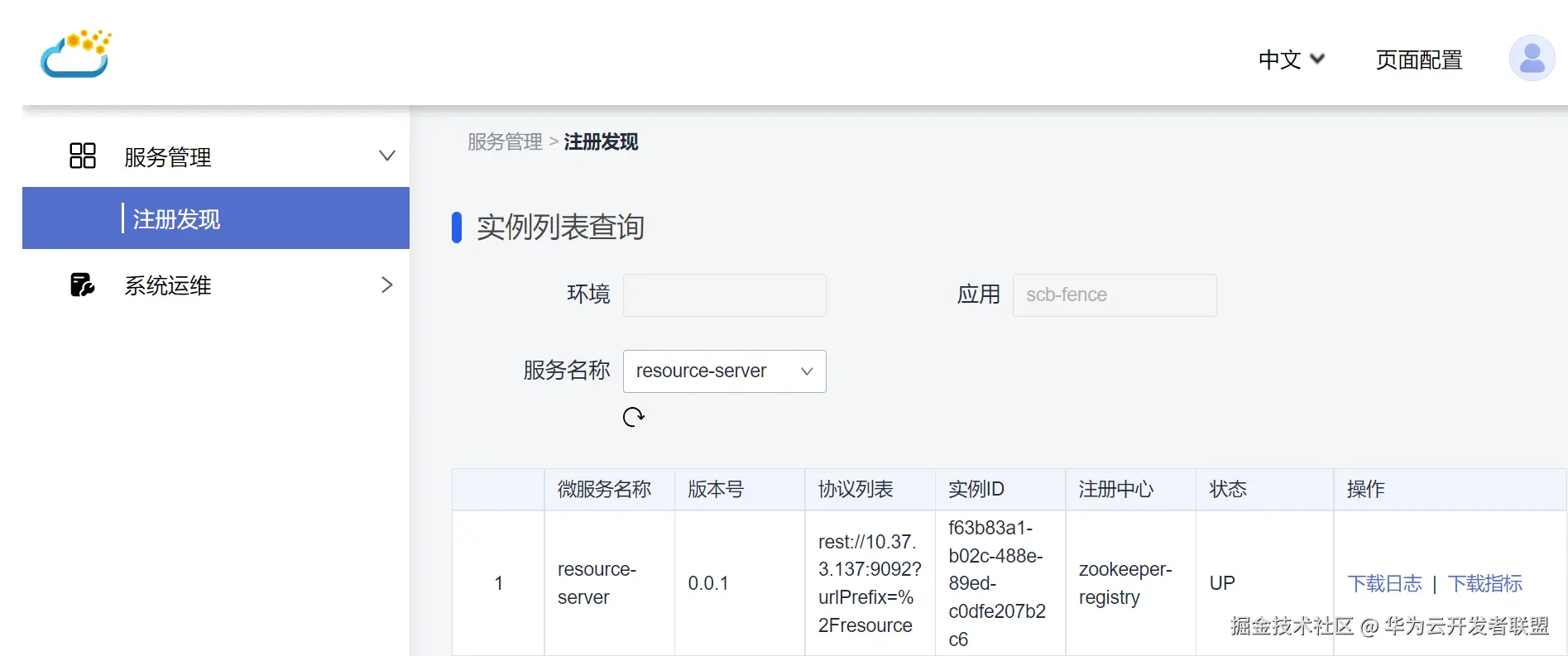在此Java DEMO成功在CCE上部署后,进入“http://localhost:9090/ui/admin/” 网址,在微服务管理界面输入微服务名称,可以查询到对应的微服务,例如resource-server微服务: