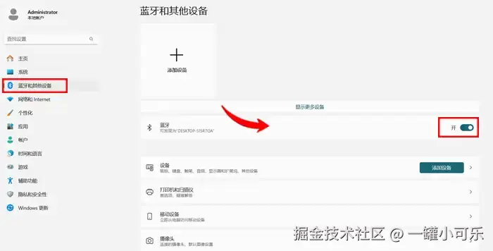 电脑蓝牙在哪里打开?在电脑系统中的蓝牙设置中也可以打开蓝牙功能。具体的操作步骤如下。