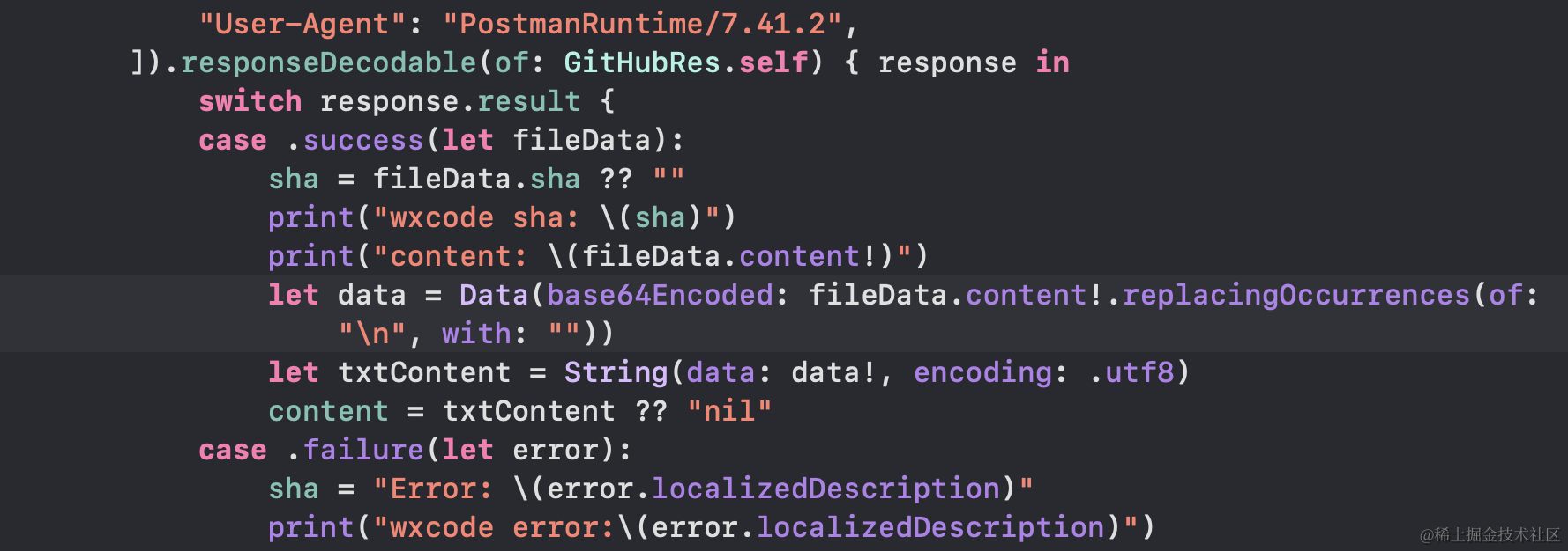 要在 SwiftUI 中使用 Alamofire 获取 GitHub 仓库中的文本文件内容(如 Base64 编码的文件),需要先发送请求获取文件元数据,然后解码文件内容。