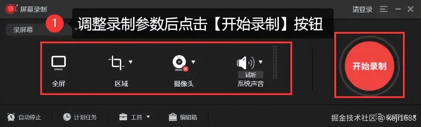 步骤2:录制前,我们还可以根据录制内容调整录制区域、摄像头、声音来源等参数,让视频录制更为专业。