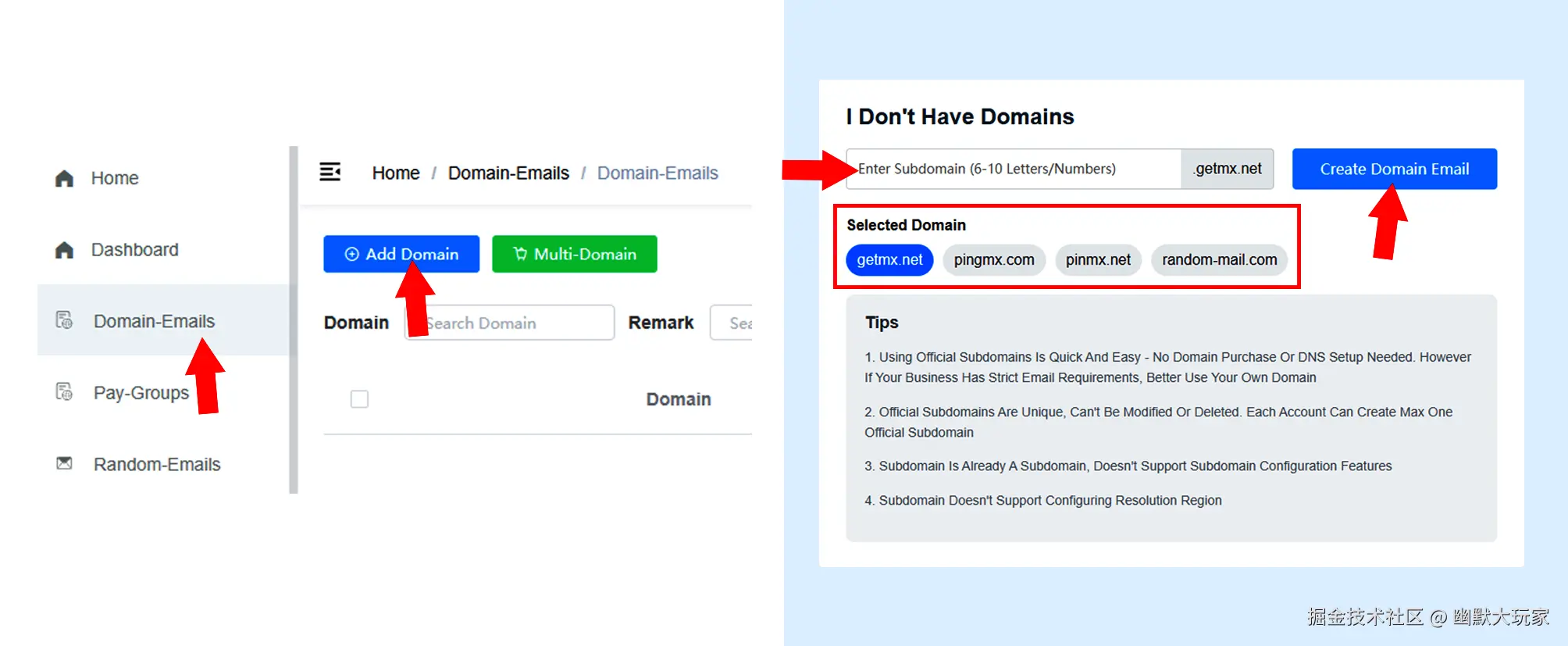 如果自己有域名或者想使用自己的域名,GetMX也支持自定义域名
