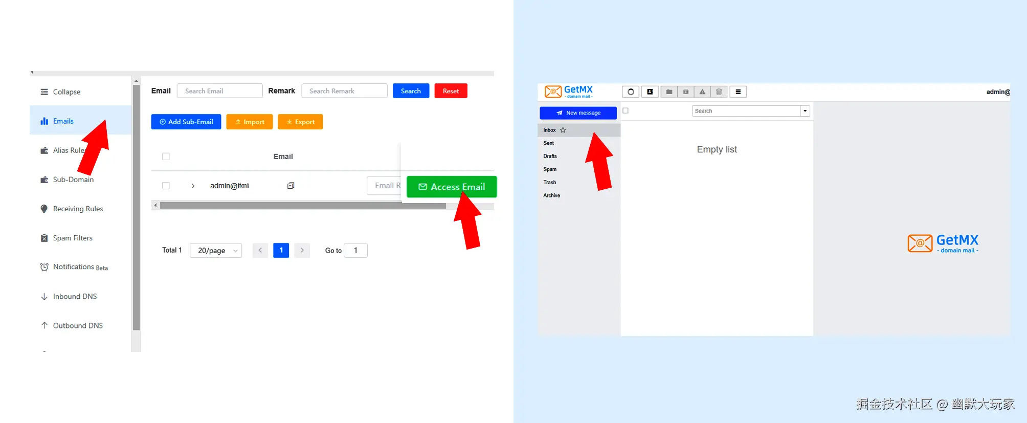 - 域名购买:选择一个靠谱的域名网站,CloudFlare、Godaddy等平台。完成域名购买后,访问 GetMX官网进行域名添加并创建邮箱