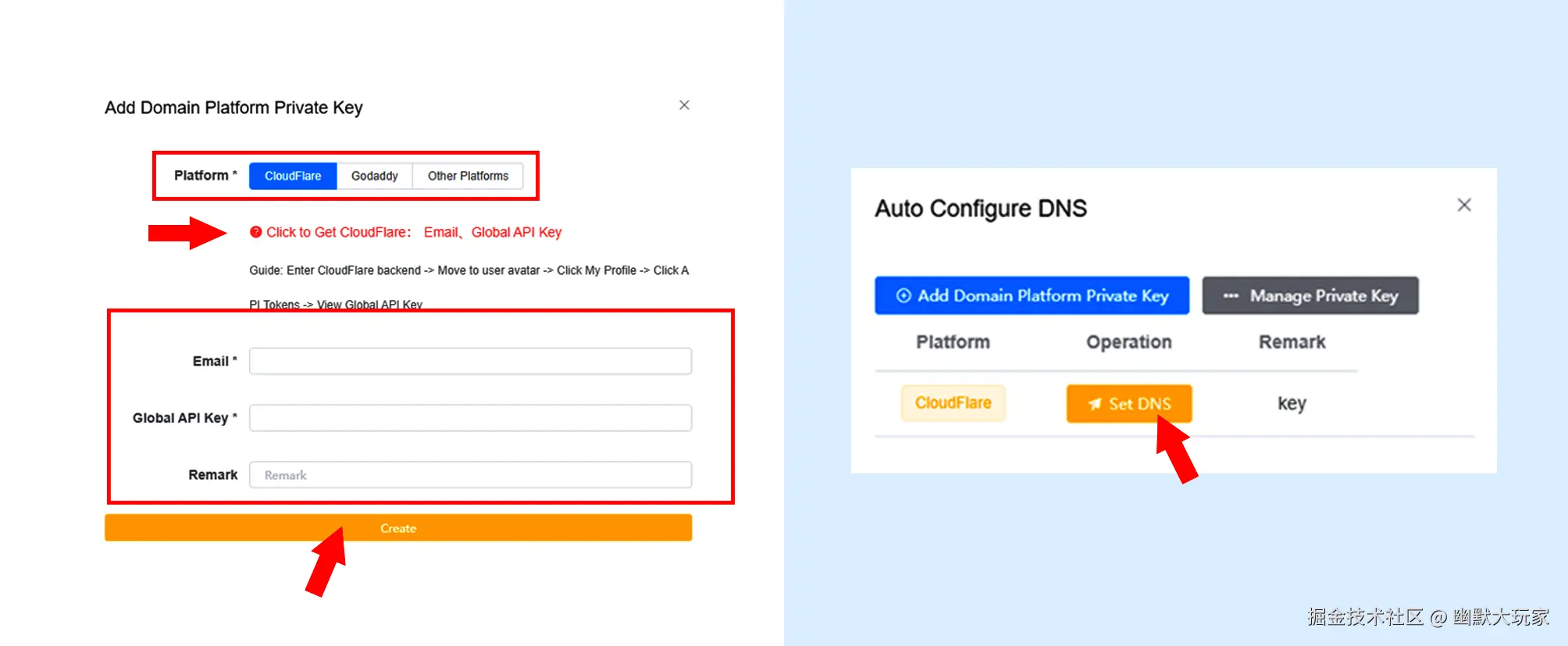 - 正常使用域名需要解析域名的DNS,有两种方式(自动解析/手动解析),这里以自动解析为例操作: