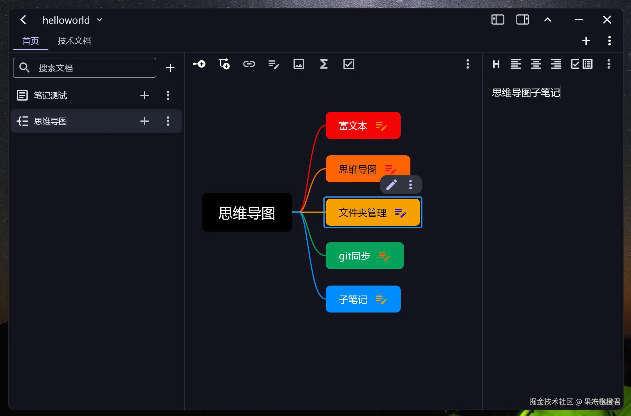 非常好看的样式,参考了一下Xmind彩虹风格,另外还支持子笔记。