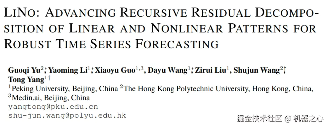 正是在这样的背景下,北京大学联合香港理工大学以及每因智能的研究团队提出了 LiNo 框架。该框架通过递归残差分解(Recursive Residual Decomposition, RRD)技术,实现了对线性和非线性模式的显式提取。