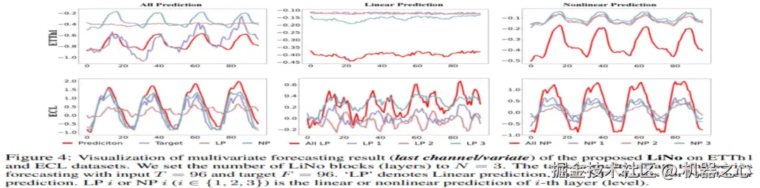 通过交替和递归地应用 Li 块和 No 块,LiNo 框架能够逐步剥离并提取时间序列中的复杂模式,直到残差信号中不再包含有用的信息。在经过多个 LiNo 块的处理后,最终的预测结果是通过聚合所有 Li 块和 No 块的输出得到的。