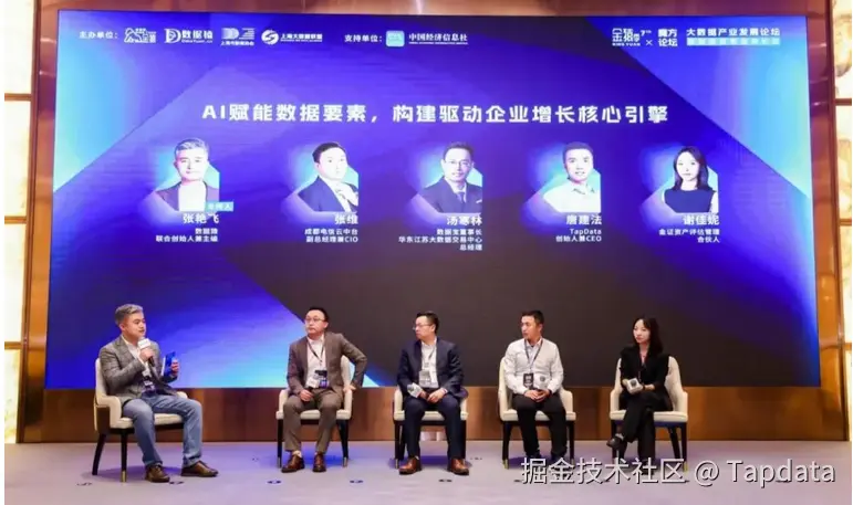 在以“AI赋能数据要素,构建驱动企业增长核心引擎”为主题的圆桌论坛上,数据猿联合创始人、主编张艳飞作为主持人邀请了成都电信云中台副总经理兼CIO张维;数据宝董事长、华东江苏大数据交易中心总经理汤寒林;TapData创始人兼CEO唐建法以及金证资产评估管理合伙人谢佳妮等企业的代表进行了深入探讨。他们围绕数据要素的流通共享、价值挖掘应用及数据资产化等议题,分享了前沿观点和成功案例。