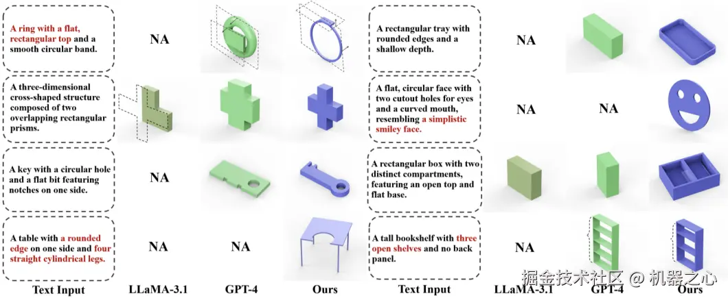 图 6. 基于文本描述的 CAD 生成效果对比