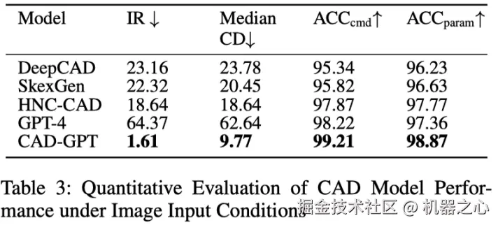 将 CAD-GPT 与三种代表性方法进行了比较。第一个是 DeepCAD,它演示了 CAD 建模中的先进生成技术。第二个是 GPT-4,代表了闭源多模态大型模型的前沿。第三个是 Qwen2-VL-Max,这是领先的开源多模态大型模型之一。相比之下,CAD-GPT 产生的输出既准确又美观。