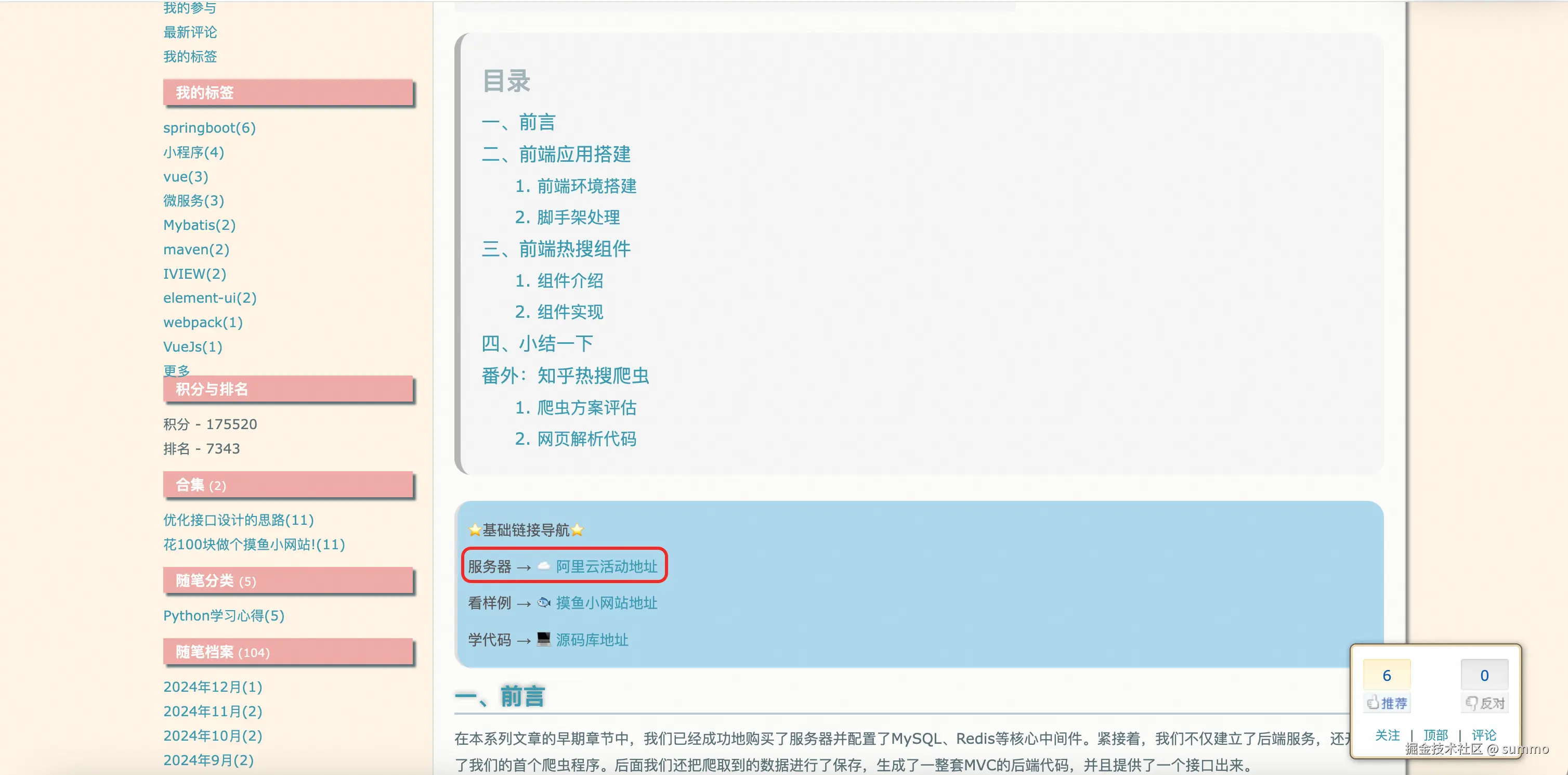 于是从7月到12月,这五个月的时间内,我一共写了10篇有关小网站的文章,内容包括后端的、前端的、运维相关的,大概将小网站的整个流程都涉及到了,相信看过我文章的小伙伴也可以做出一个属于自己的摸鱼小网站了。