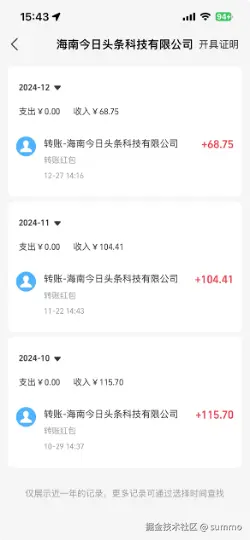 最后还有一部分收入是稀土掘金平台