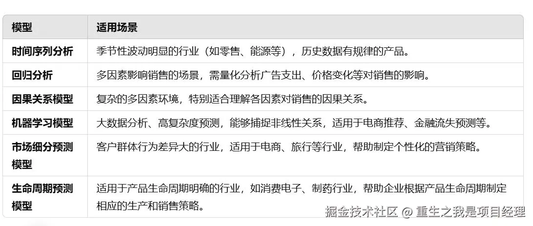不同的销售预测模型有不同的适用场景,通常,企业会结合多种方法来提高预测的可靠性。例如,时间序列分析适合那些有明确季节性或趋势的数据,而回归分析和机器学习模型则更适合考虑多个外部因素和复杂数据的场景。