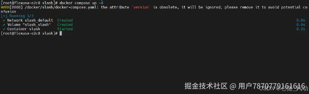 WARN[0000] /docker/slash/docker-compose.yaml: the attribute version is obsolete, it will be ignored, please remove it to avoid potential confusion
